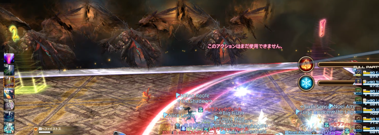 このあたりでタンクは固有の軽減等をイフリートデバフのヒラやDPSに投げると良い、痛いので。