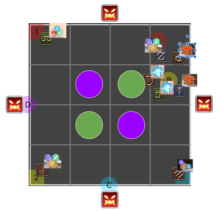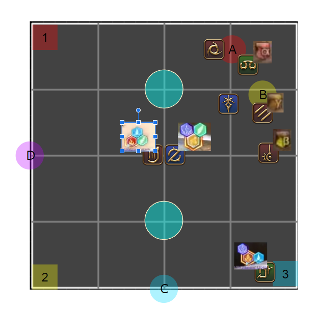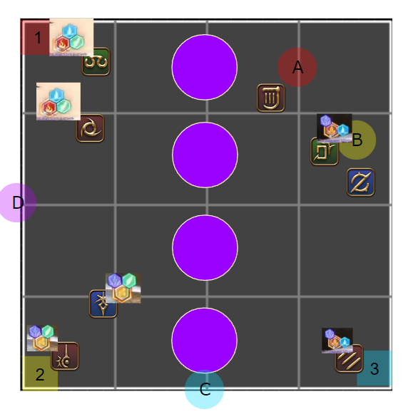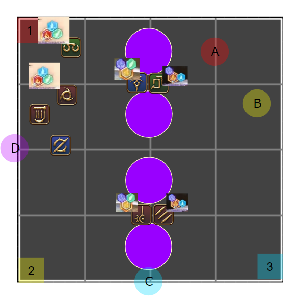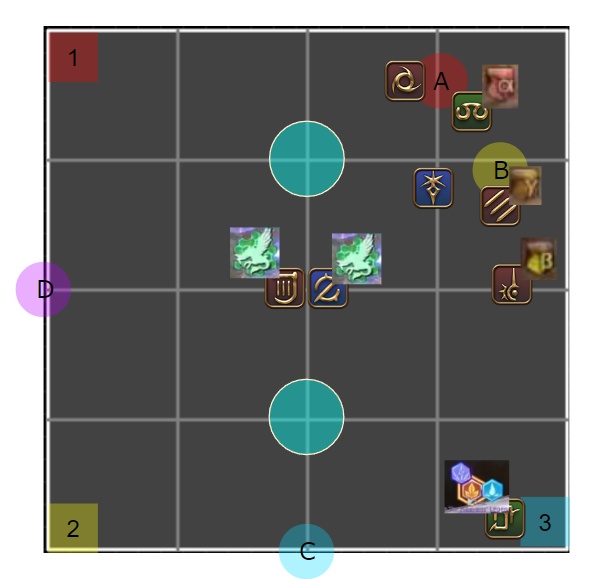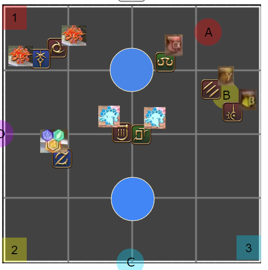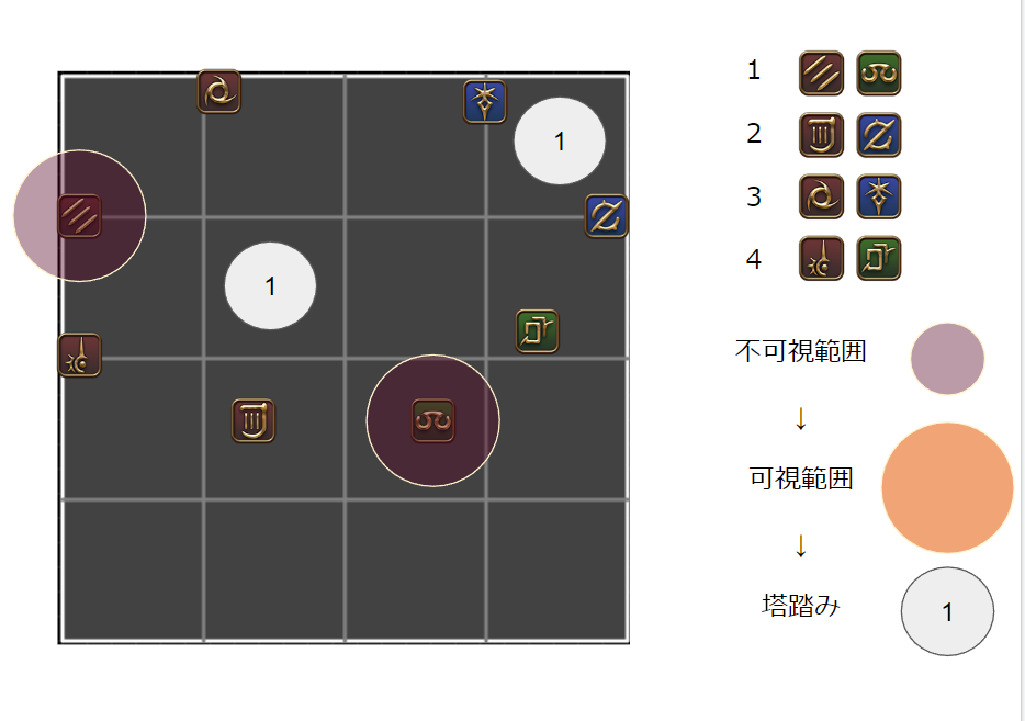 /p 【概念支配】2人割:A 1/3人割:B /p 塔踏み (北) α>β>γ (南) /p [概念1 2回目塔合成] /p (北) 遅αβγ>元2シェア>元3シェア>早αβγ(南) /p 【概念支配2】 /p 線:北東イフ待機時間に小散開でアピール、西は北塔、南は南塔を踏んだ人 /p 4塔合成:(西)遅α+遅β、(東)早余り+遅γ /p 4塔踏み:遅α/早αβγ:合成場所から時計回り)