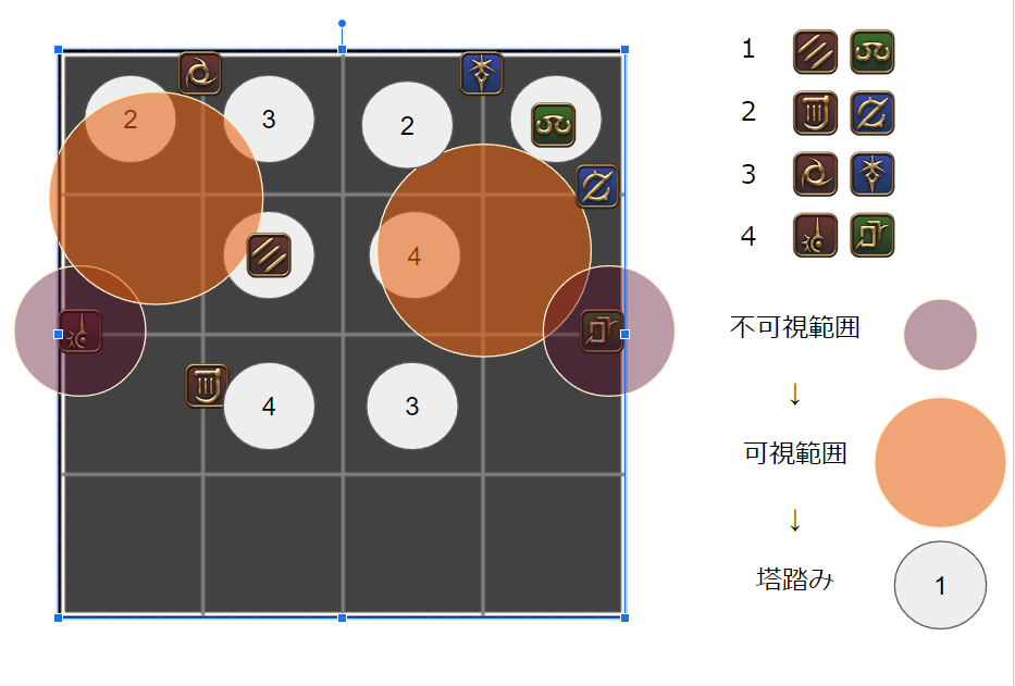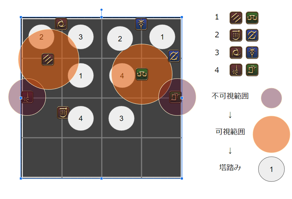 MTとD1は自分が調整役になる場合は必ず誘導役、D2とSTは自分と違うロールがデバフに選ばれているときにのみ誘導役となる、少しややこしいが覚える。