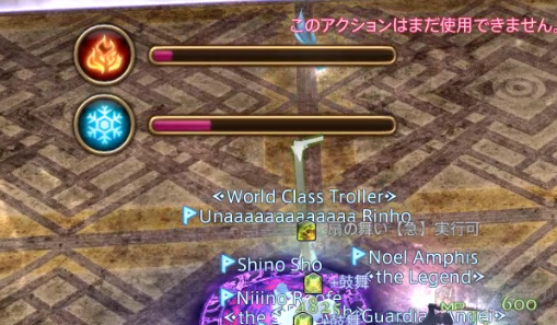 1度目のゲージギミック処理の後、2つ目のゲージが出現、こちらは氷と炎のゲージ。