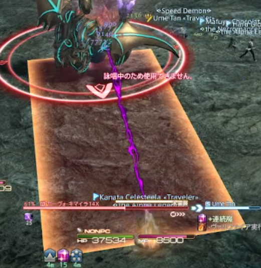 詠唱完了で線の繋がった対象にボスが突進攻撃。