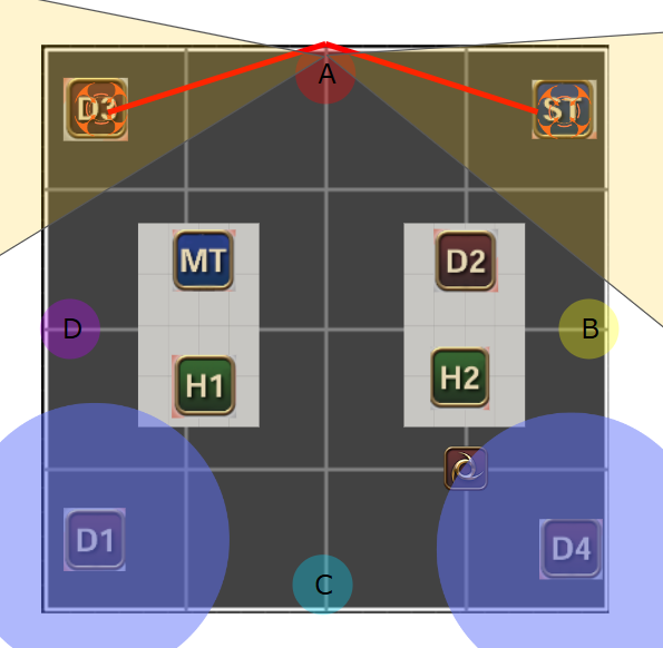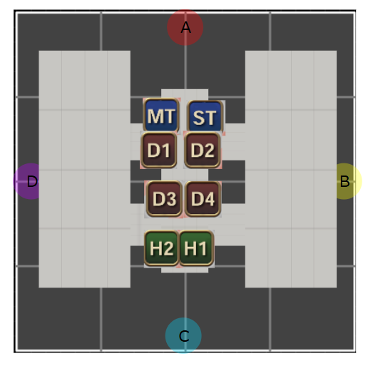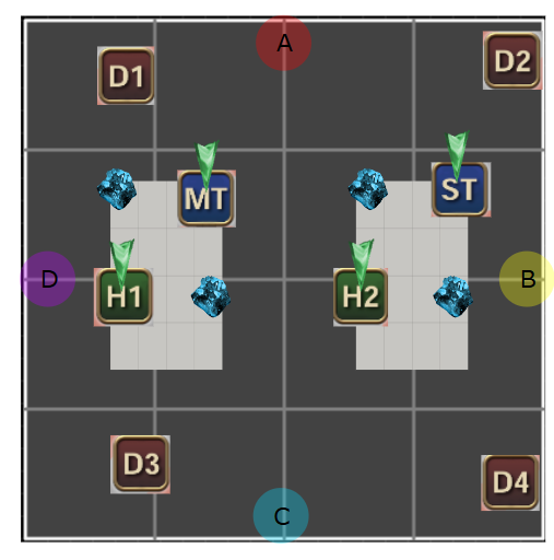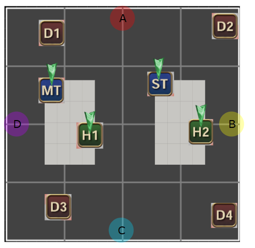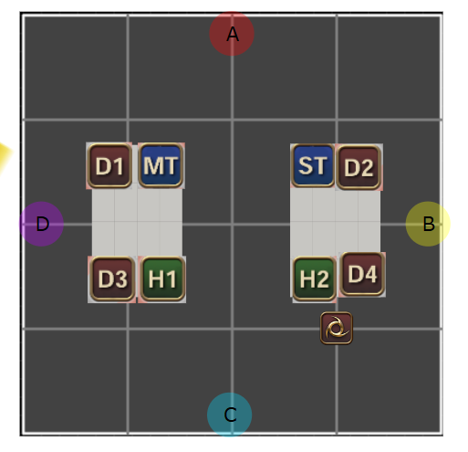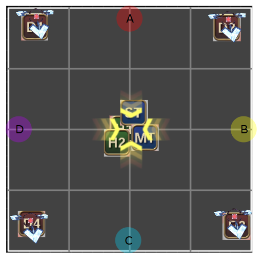 北西:MTD1 北東:STD2 南西:H1D3 南東:H2D4の2人で安地に入り、床回転後に散開