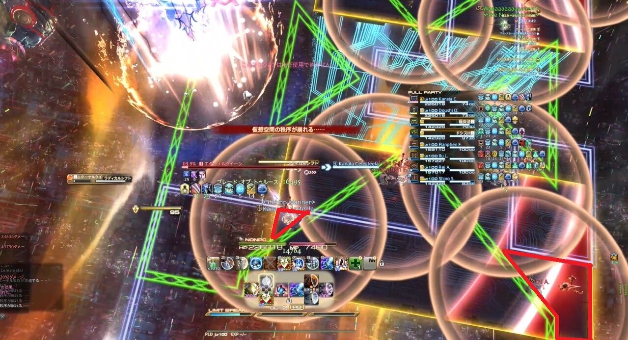 詠唱完了でフィールドがどちらかの床に変化。ヴァーチャルシフトとは違い、その時の場所でノックアップするため、床の無い場所で撃ちあがってしまうと即死なので注意。