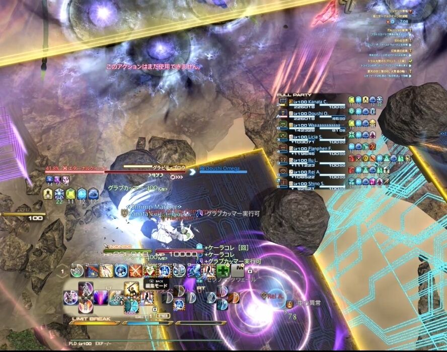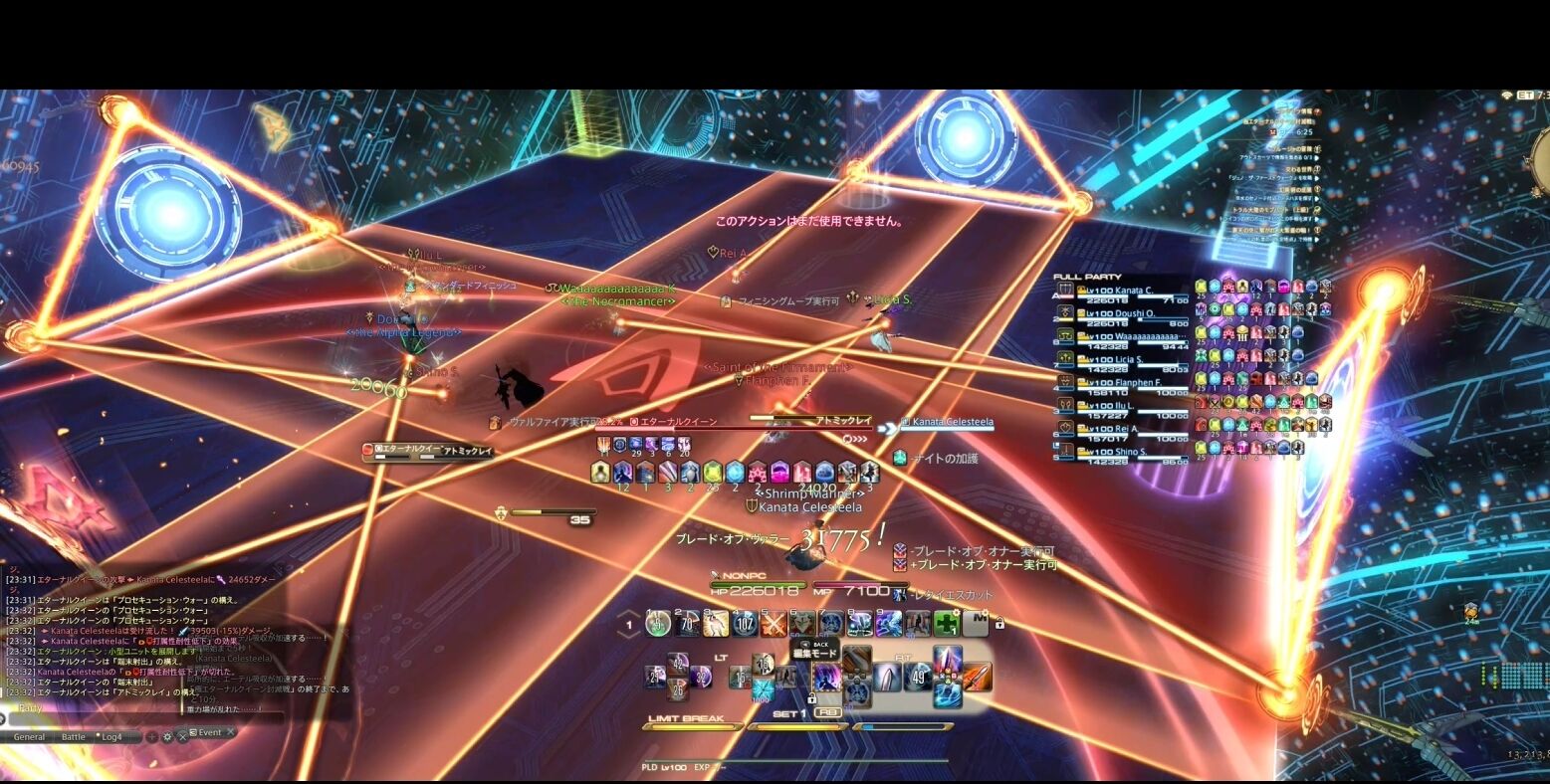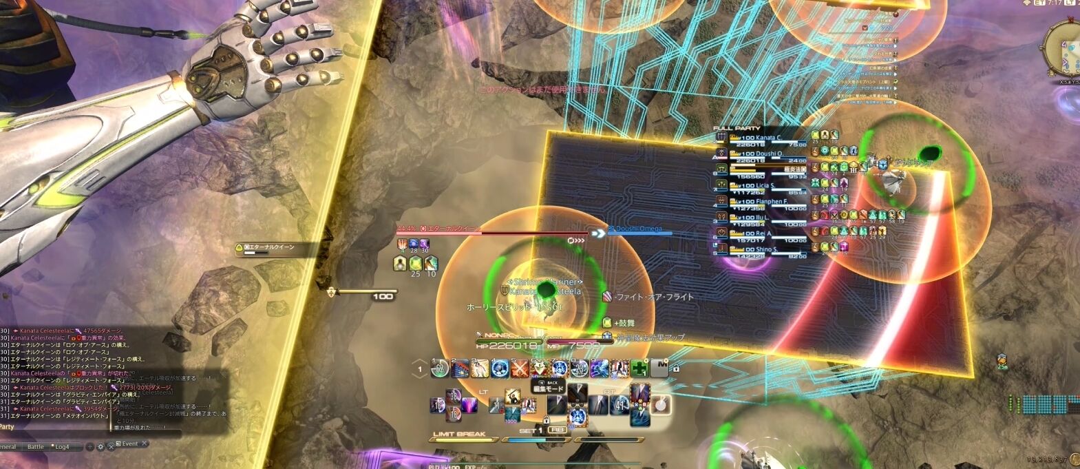 全体攻撃と同時に3種類のデバフが付与。空間掌握:光撃…所謂フレア、距離減衰。4人付与される、THかDPSのロールで付与。