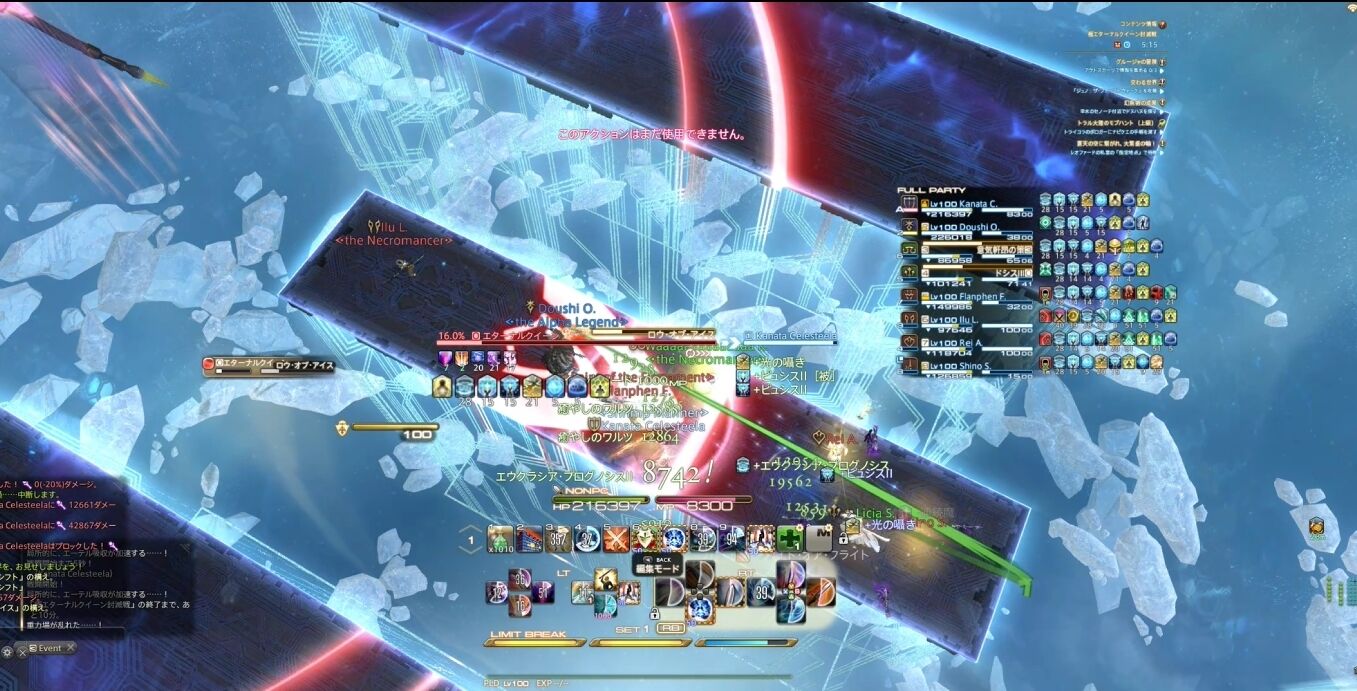 また塔が出現する直前くらいからボスがレジディメートフォース(左右どちらかスタートの連続半面)を詠唱。