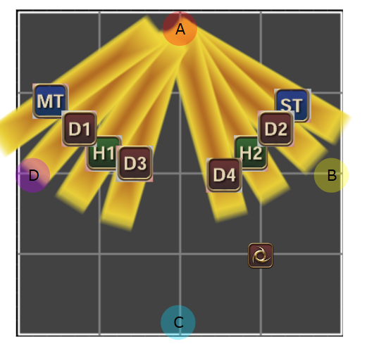 そのため扇攻撃の安地内でMT組左、ST組右で受ける。