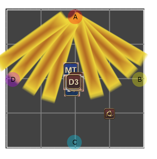 この三角形は線で繋がった2人の中間となる位置に動き、一定時間後位置が確定し直線AoEを放つ。