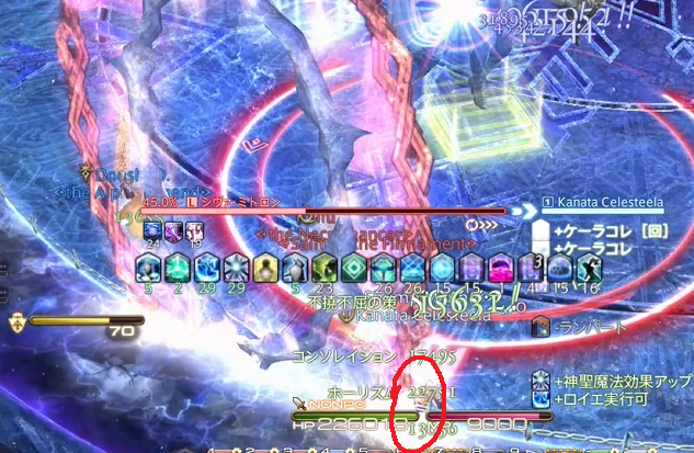 サイスの詠唱完了と同時にマーカー持ちは円範囲をフィールド内側1つ目の円の位置に捨てる。