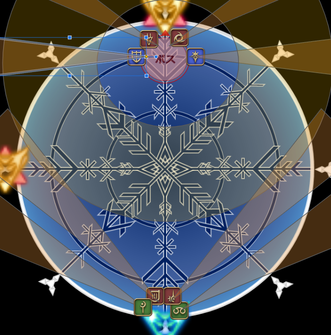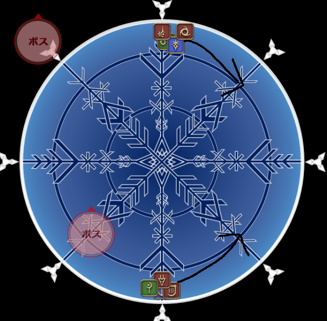 以下能書き、処理だけ知りたい人は飛ばしてok。ボスが少し南寄りに移動し、鏡写しを詠唱。