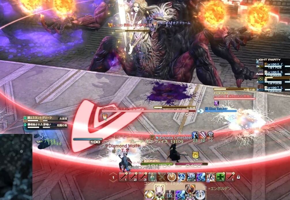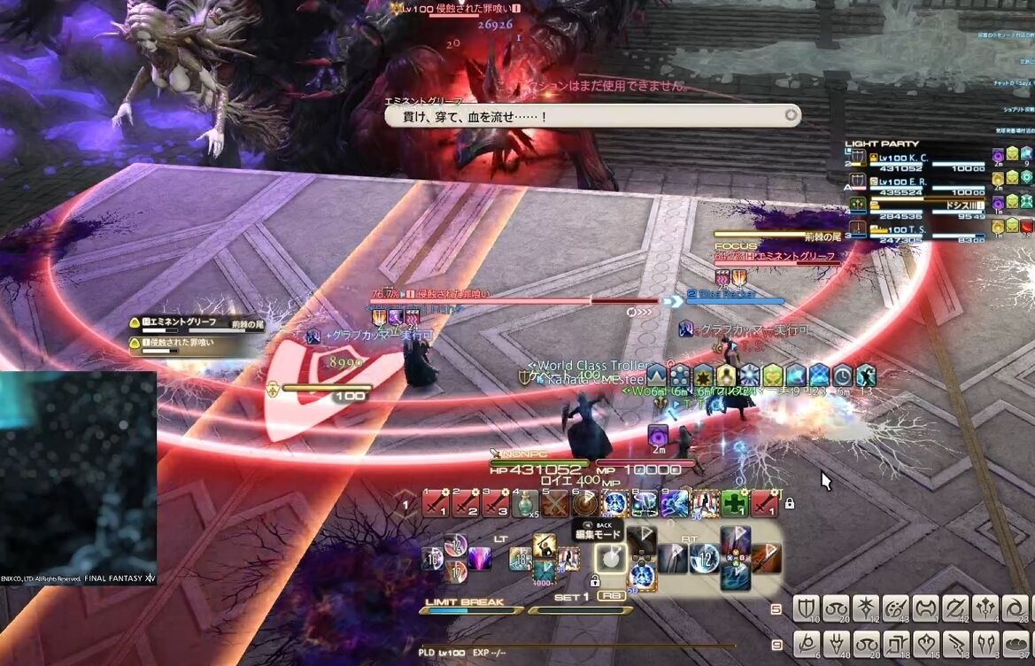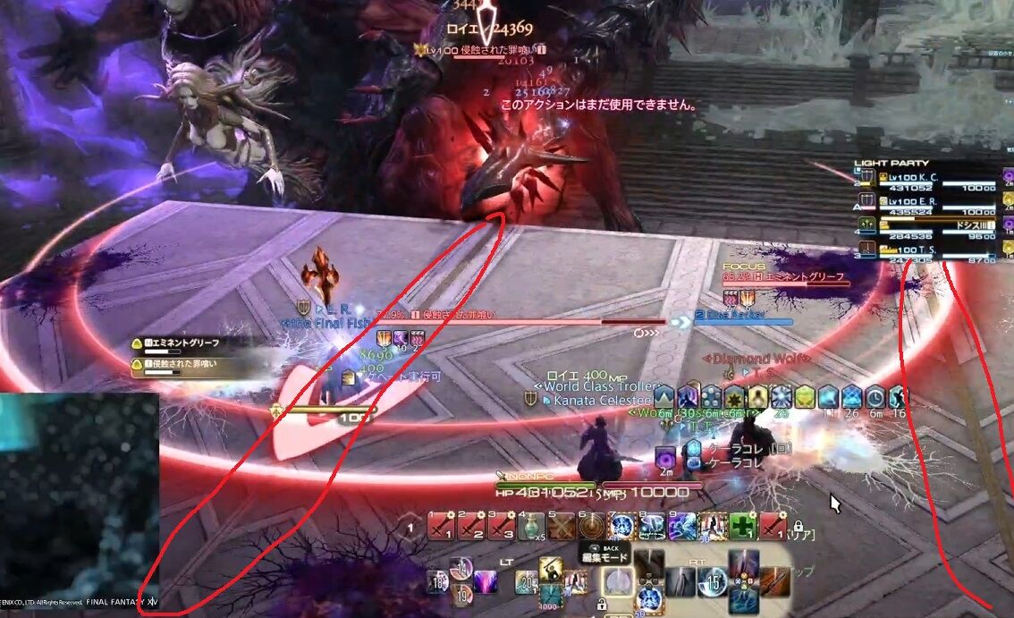 1回目は深淵の焔の8面体が設置されてから、発動までの間に行ってくる。エミネントグリーフと罪喰いがそれぞれエーテルドレインを詠唱。