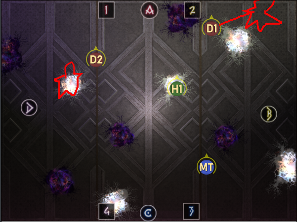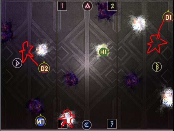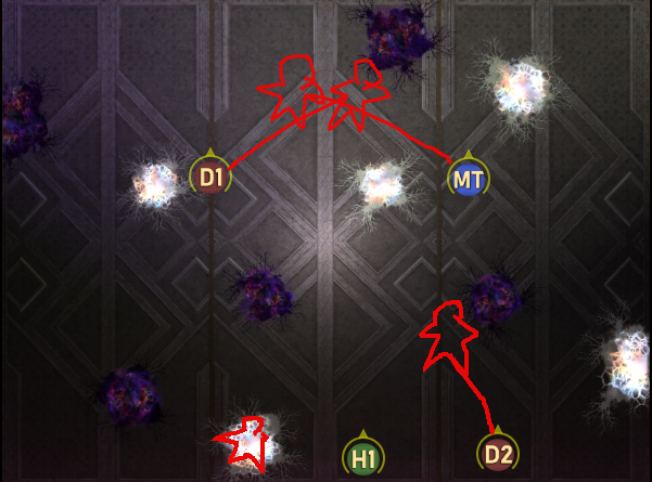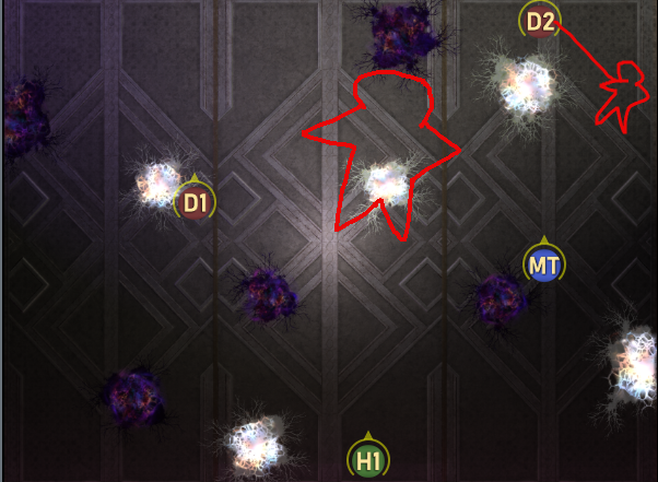 D1は北東の分身出現後すぐにタゲは取らず、ワンテンポ置いてからゆっくりと線を付ける。