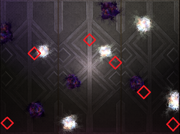 フィールドにいくつかこのような紫と白の模様?が存在する。