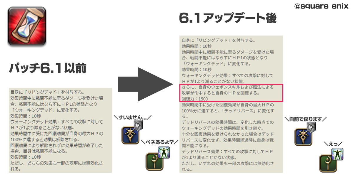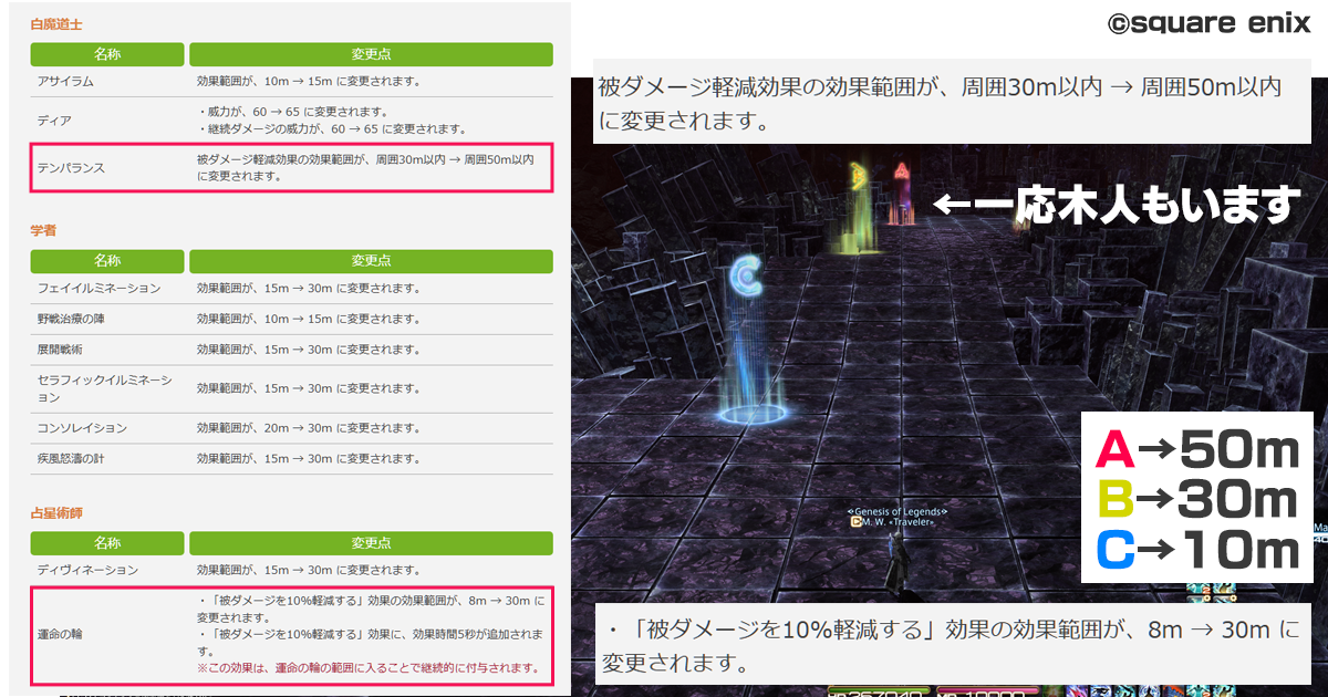 ・パッチ 6.4 でテンパランス 30m->50m というギャグのような強化を受けている横で、占星術師の運命の輪に 8m -> 30m とクリティカルな強化が入り、軽減性能に大きな差が開いた。