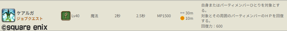 一方、白魔道士は、とりあえずケアルガを連打して、被ダメージ発生直前にダメ押しでハート・オブ・ラプチャー(或いは迅速魔 + ケアルガ)を撃つだけで、短時間で大量のヒールを行うことができます。