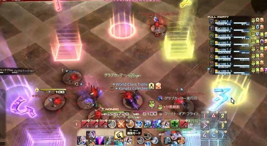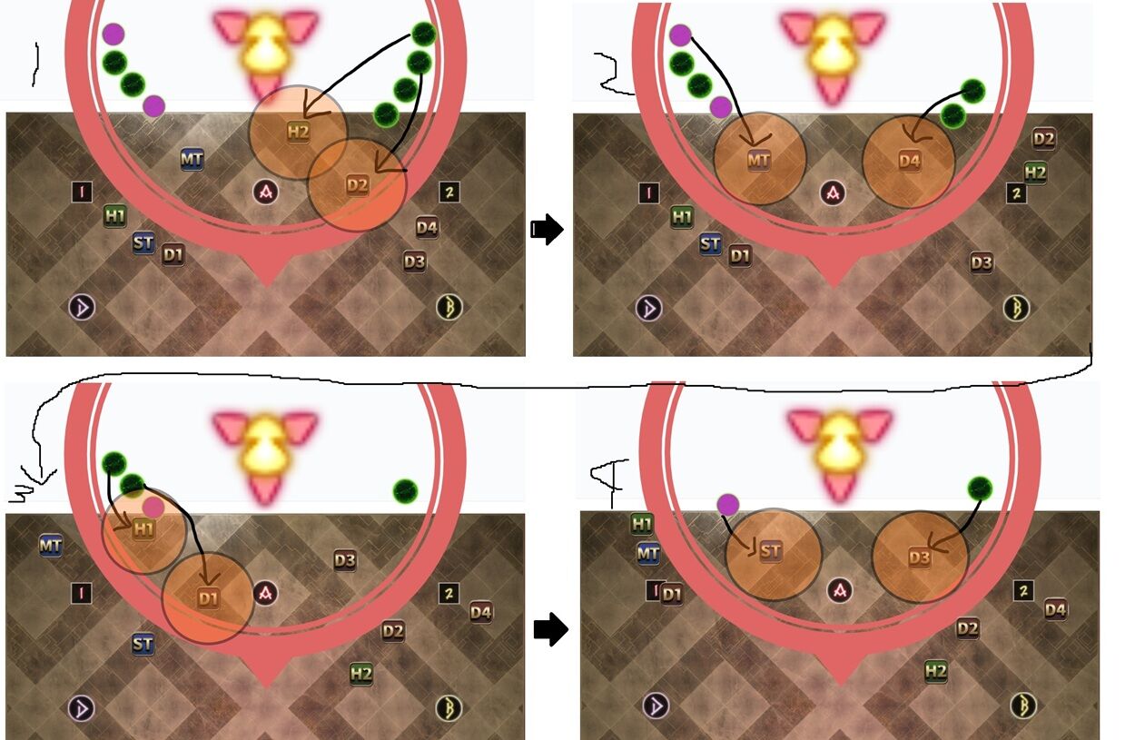緑の玉はヒラとDPS、紫の玉はタンクが受ける。