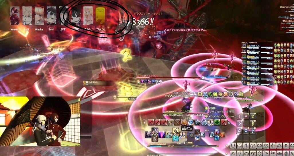 最初の画像でタンヒラについているオレンジの円形デバフは時間切れで円形AoE(散開)。