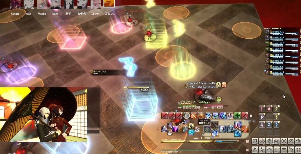 床の右前端にDPS、左後端にタンクヒラが立つ。